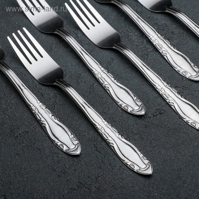 Набор столовых вилок «Общепит», h=19 см, толщина 0,7 мм, 6 шт, цвет серебряный