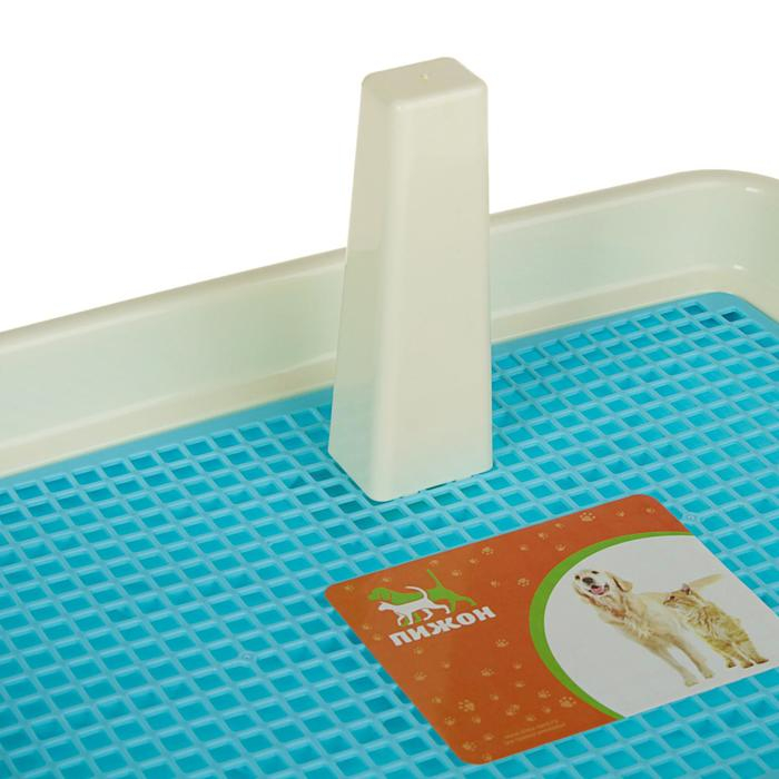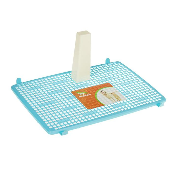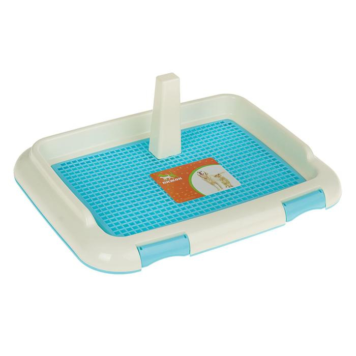 Туалет для собак 46,5 х 35,5 х 5,5 см, со съёмным бортом, решеткой и столбиком, голубой