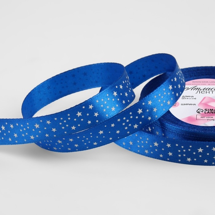 Лента атласная «Звёзды», 15 мм × 23 ± 1 м, цвет синий №040