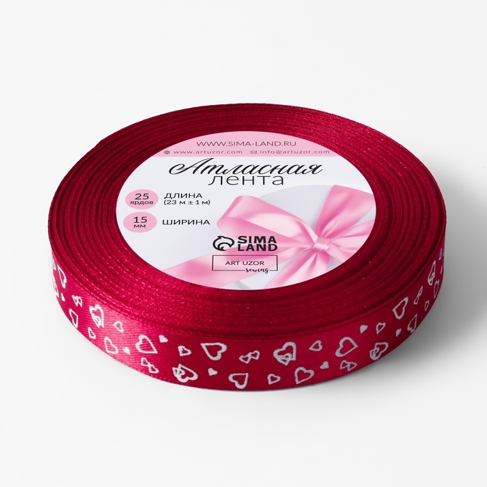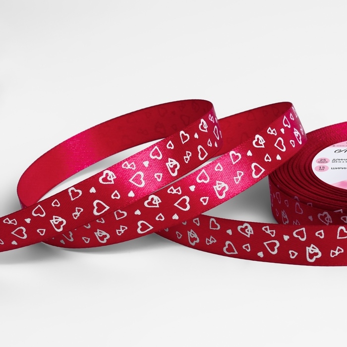Лента атласная «Сердца», 15 мм × 23 ± 1 м, цвет малиновый №072