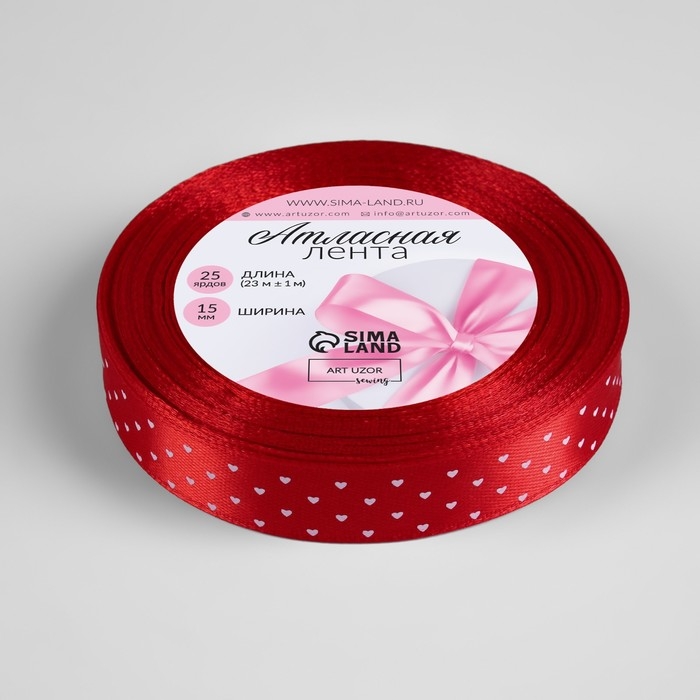 Лента атласная «Сердечки», 15 мм × 23 ± 1 м, цвет красный №026