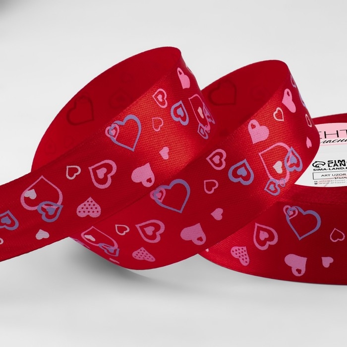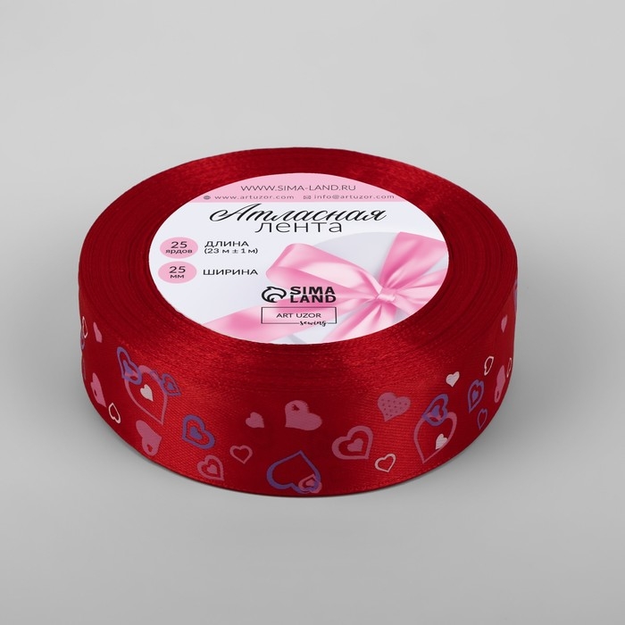 Лента атласная «Сердца», 25 мм × 23 ± 1 м, цвет красный №026