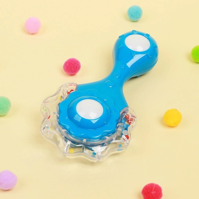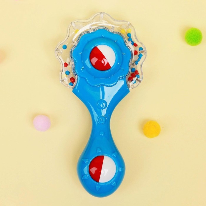 Погремушка «Одуванчик» — это яркая игрушка, выполненная в форме большого цветка. Она обязательно привлечёт внимание ребёнка и заинтересует его, независимо от того, как она будет повернута. Удобная ручка с крутящимся шариком позволит малышу легко держать погремушку, а её размеры идеально подходят для детской ручки. Дополнительные сенсорные элементы в виде крутящихся и шумящих шариков, а также прозрачная «шапочка» с мелкими шариками внутри обязательно привлекут внимание ребёнка. Он будет с интересом наблюдать за их движением.