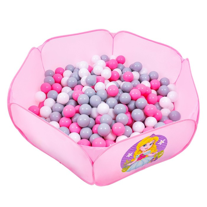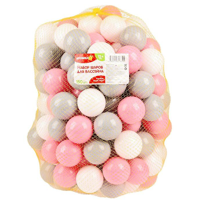 Шарики для сухого бассейна с рисунком, диаметр шара 7,5 см, набор 150 штук, цвет розовый, белый, серый