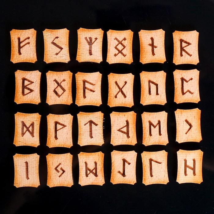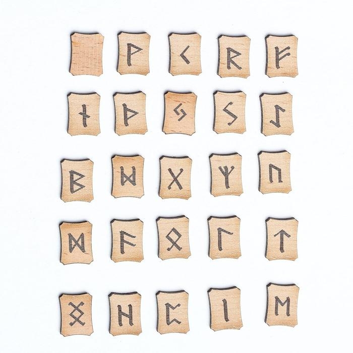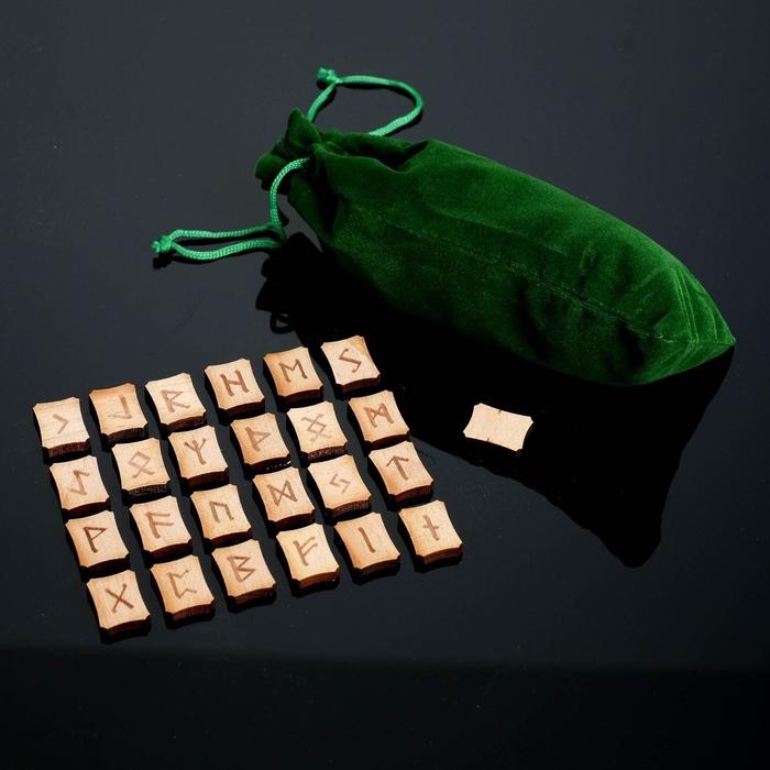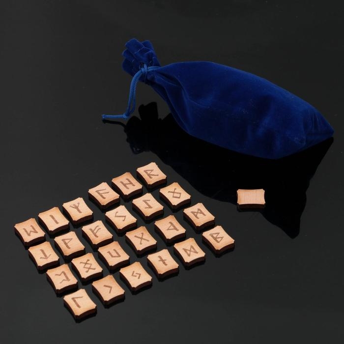 Руны для гадания «Скандинавские», 25 шт, натуральный дуб, мешочек