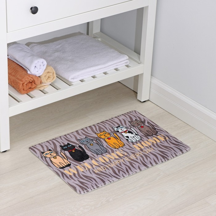 Коврик для ванной и туалета Доляна «Кошки», 40×60 см