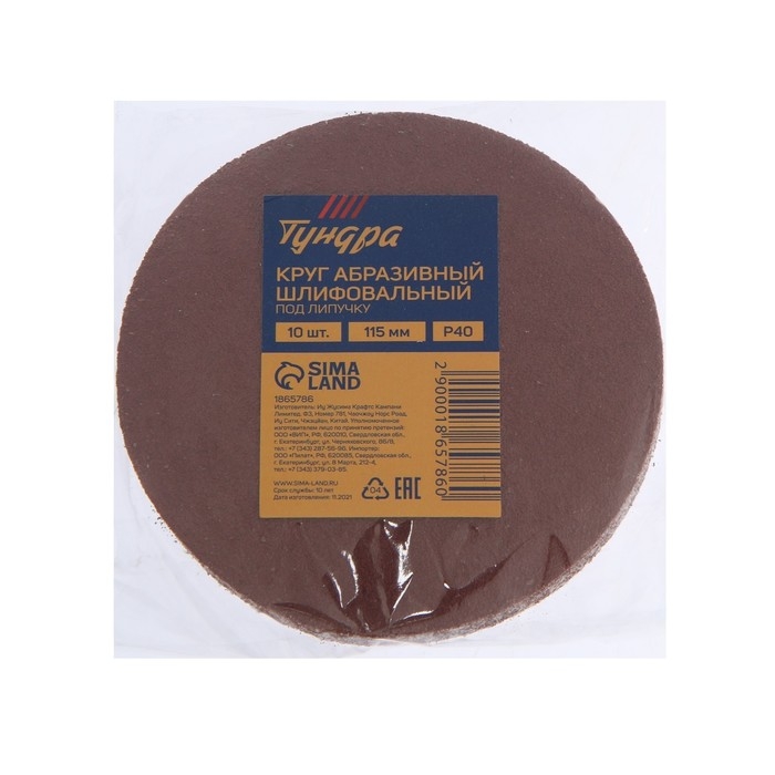 Круг абразивный шлифовальный под "липучку" ТУНДРА, 115 мм, Р40, 10 шт.