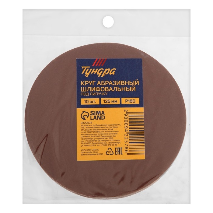 Круг абразивный шлифовальный под "липучку" ТУНДРА, 125 мм, Р180, 10 шт.