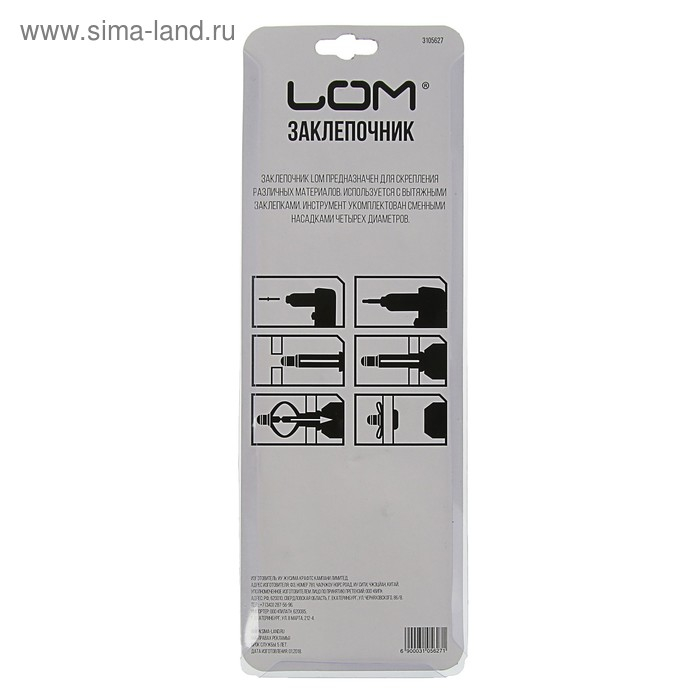 Заклепочник ЛОМ, 200 мм, заклепки 2.4 - 3.2 - 4 - 4.8 мм