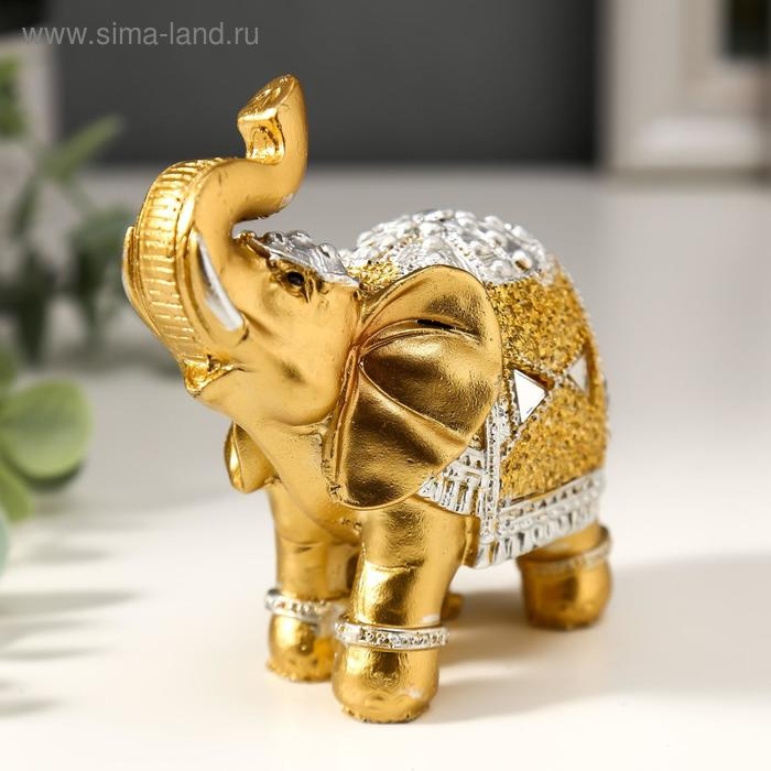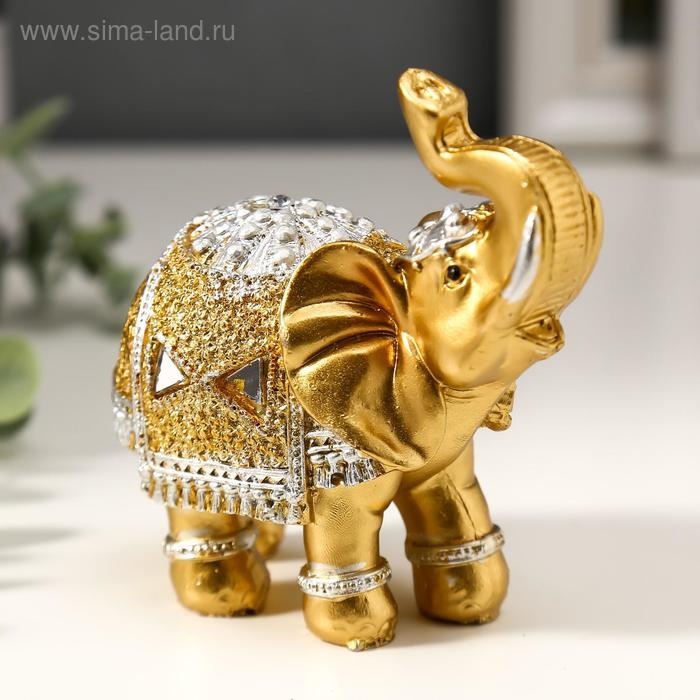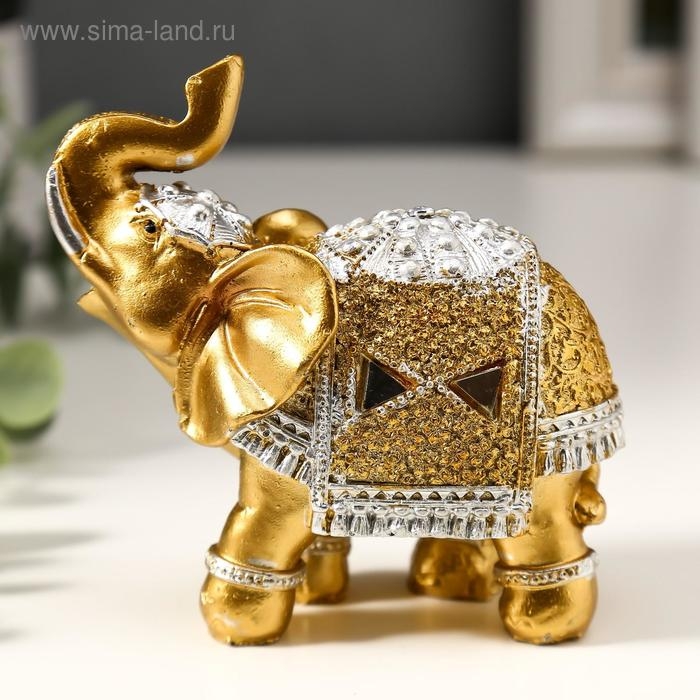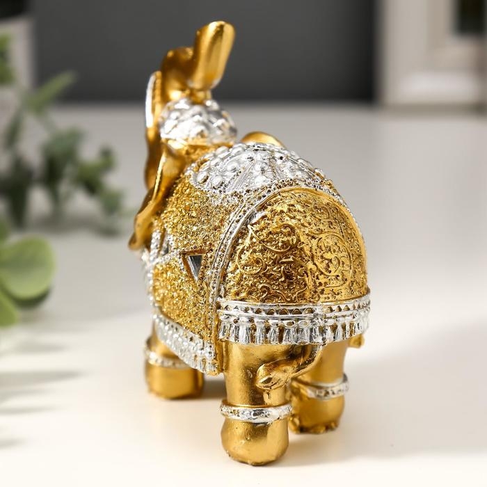 Сувенир полистоун "Золотой слон в зеркальной попоне" 10х11х4,2 см