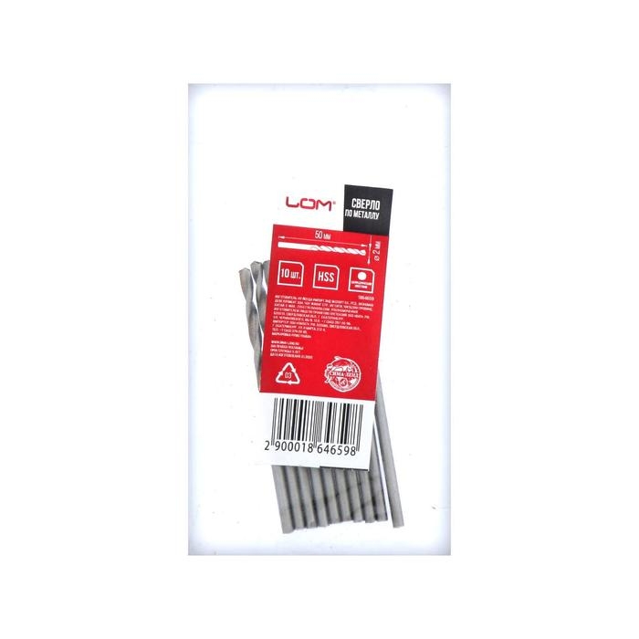 Сверло по металлу ЛОМ, HSS, цилиндрический хвостовик, 2×50 мм, 10 шт.