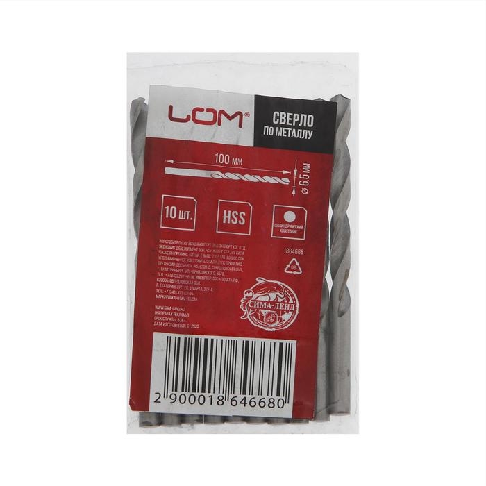 Сверло по металлу ЛОМ, HSS, цилиндрический хвостовик, 6.5×100 мм, 10 шт.