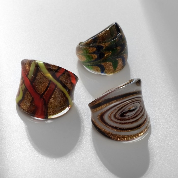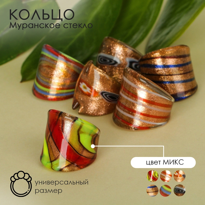Кольцо «Муранское стекло» полосы, цвет МИКС