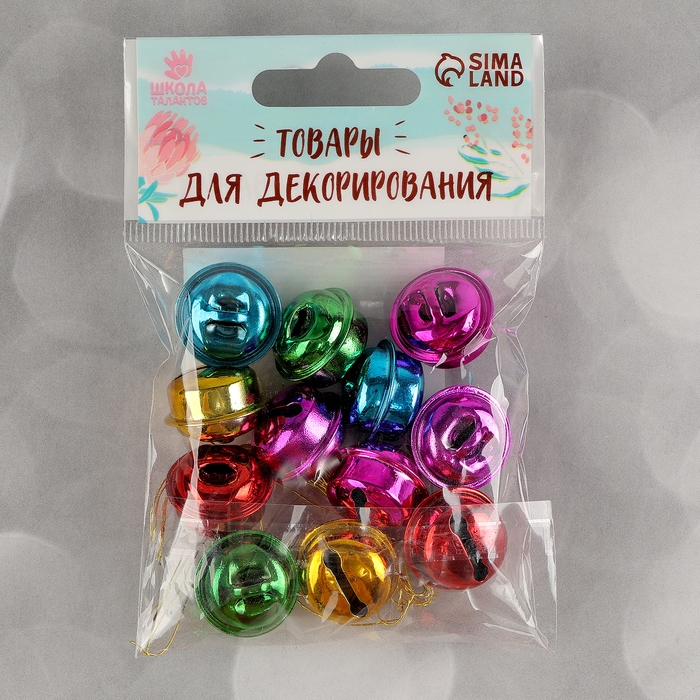 Бубенчики, набор 12 шт., размер 1 шт. — 2 × 2 см, цвет красный, жёлтый, розовый, синий, зелёный