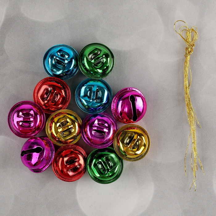 Бубенчики, набор 12 шт., размер 1 шт: 3×3 см, цвет красный, жёлтый, синий, серебряный