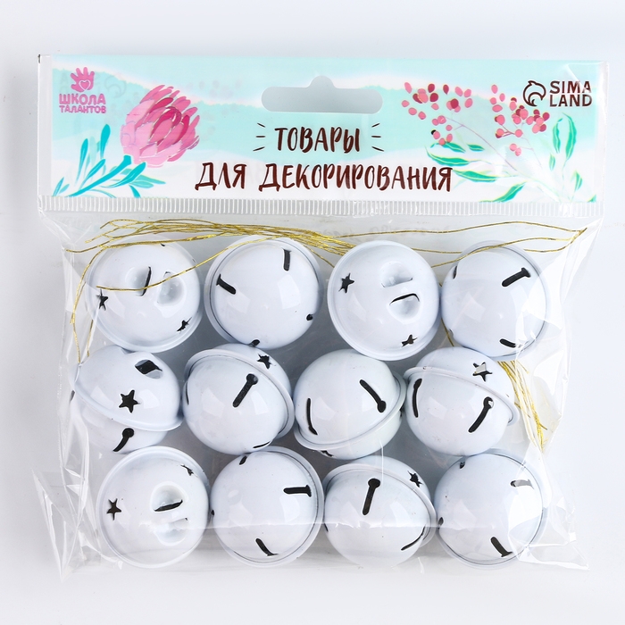 Бубенчики для рукоделия, набор 12 шт., размер 1 шт. — 3 см, цвет белый