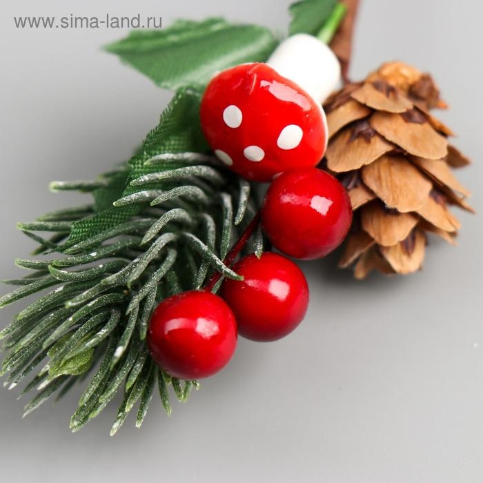 Декор для творчества "Веточка ели с шишкой и грибочком" 13 см