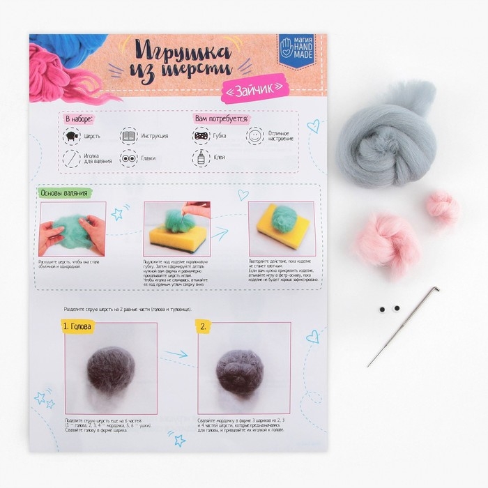 Валяние из шерсти. Игрушка «Зайчик», набор для творчества