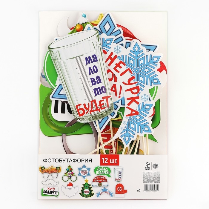 Набор фотобутафории отлично подойдет для веселой компании, которая любит фотографироваться. Также данный набор внесёт оригинальность в ваши праздничные фотографии. Особенные снимки ещё долго будут дарить счастливые воспоминания. Изделия выполнены из картона плотностью 250 грамм. В набор входит 12 предметов.