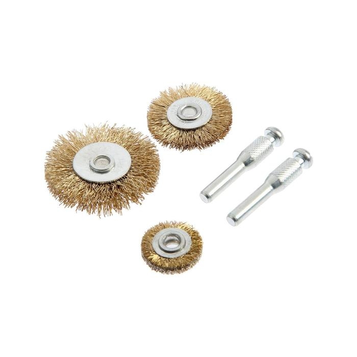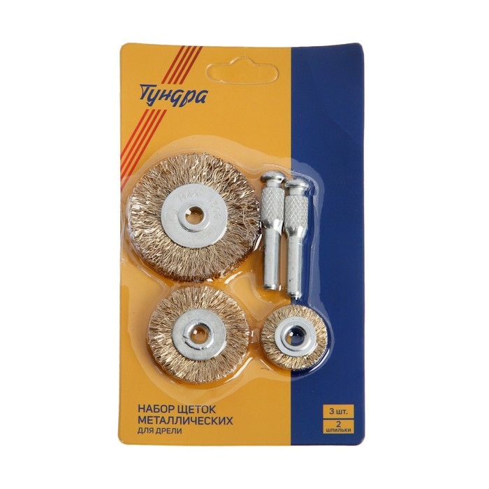 Набор щеток металлических для дрели ТУНДРА, плоские 25-38-50 мм, 3 шт. + 2 шпильки