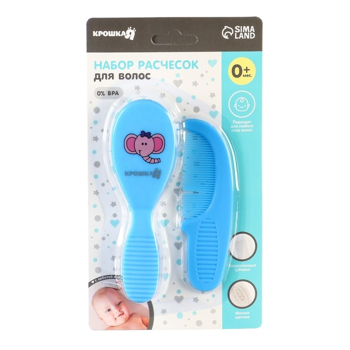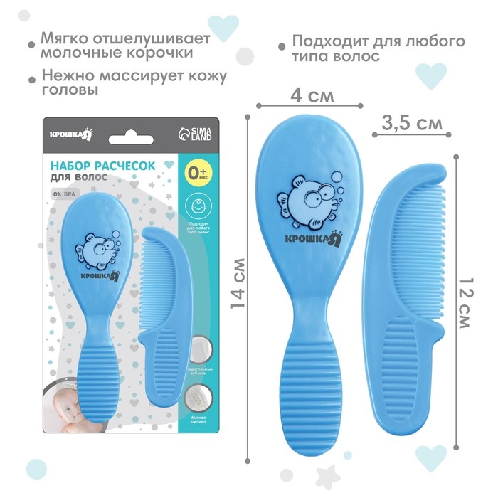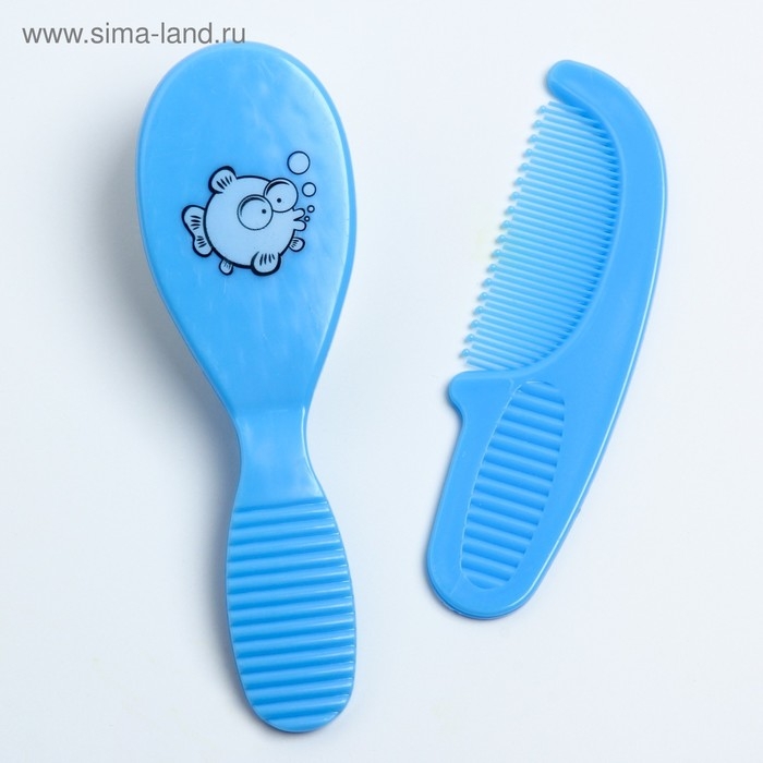 Расчёска детская + массажная щётка для волос, от 0 мес., цвет голубой, рисунок МИКС