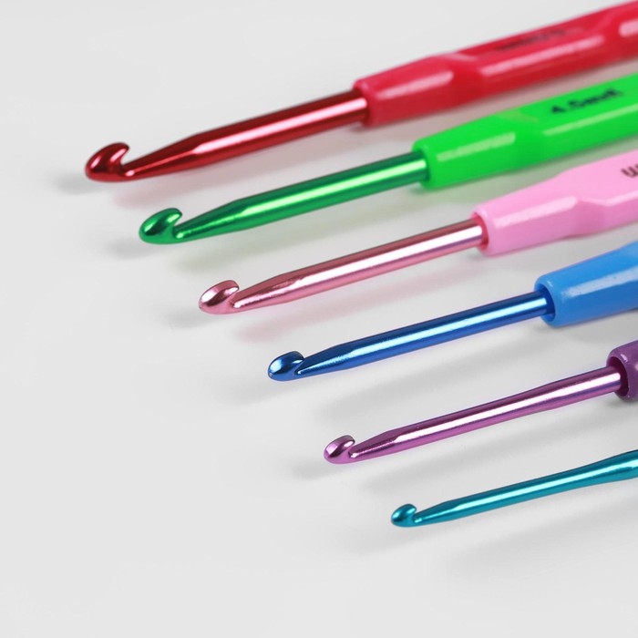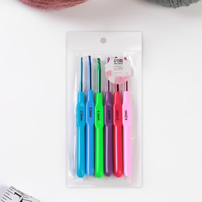 Набор крючков для вязания, с пластиковой ручкой, d = 2,5-5 мм, 14 см, 6 шт, цвет разноцветный