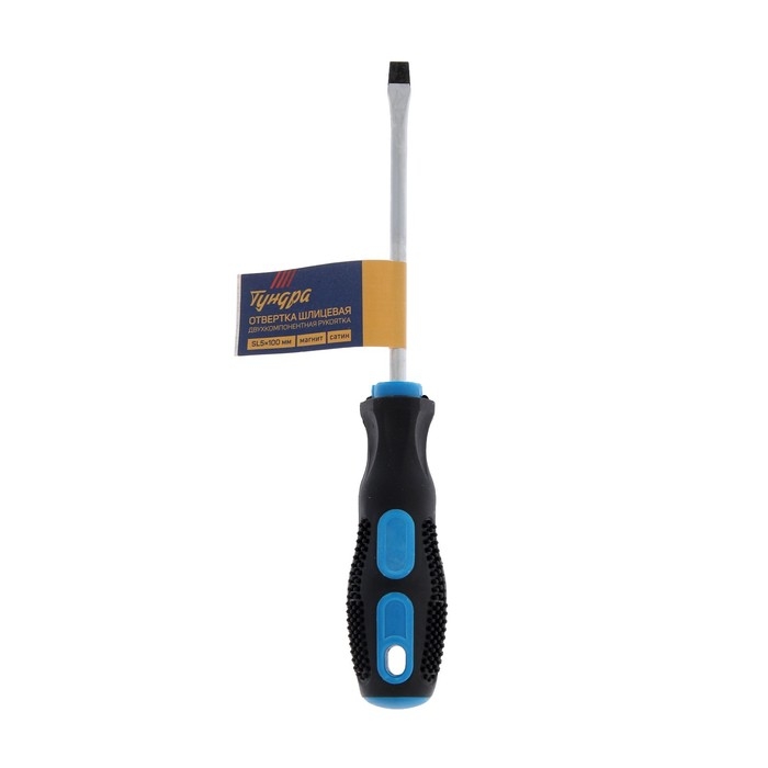 Отвертка шлицевая ТУНДРА, сатин, магнит, двухкомпонентная рукоятка, SL5 х 100 мм