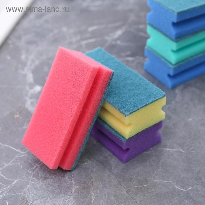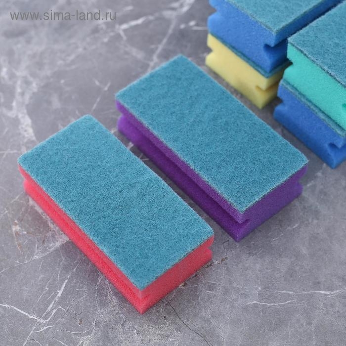 Губка для мытья посуды Доляна «Генеральная уборка», 12×6×4 см, 6 шт