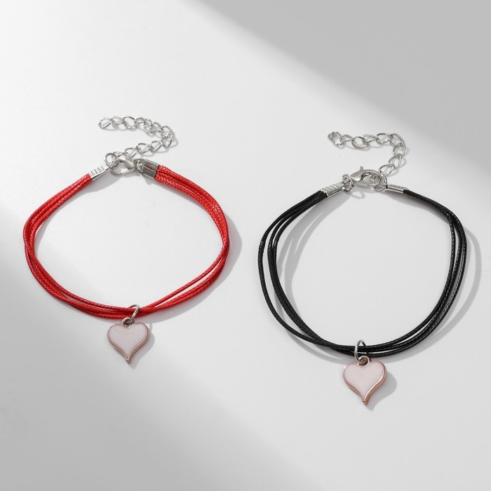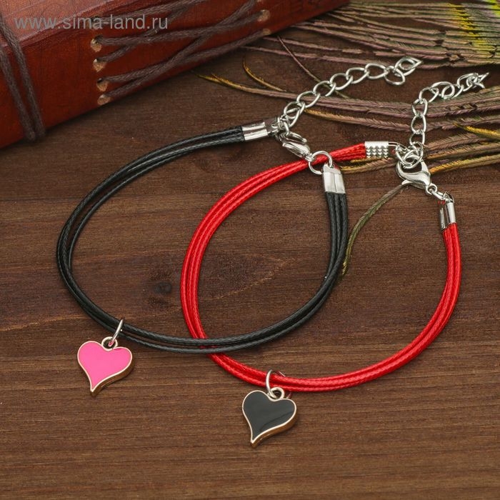 Браслеты «Неразлучники» сердце, цвет чёрно-красный, L=17 см