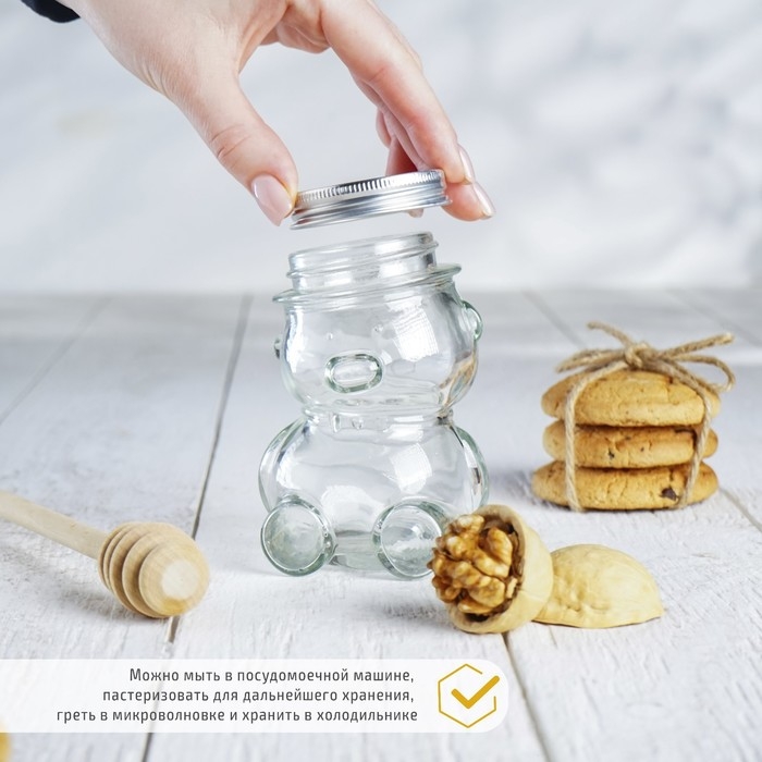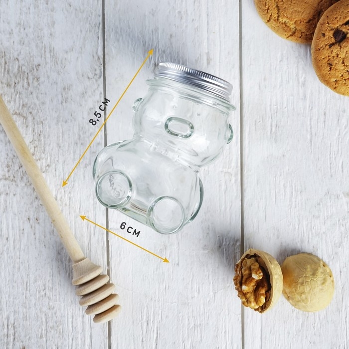 Баночка стеклянная для мёда и варенья «Медвежонок», 200 мл, 11,5×9,3 см