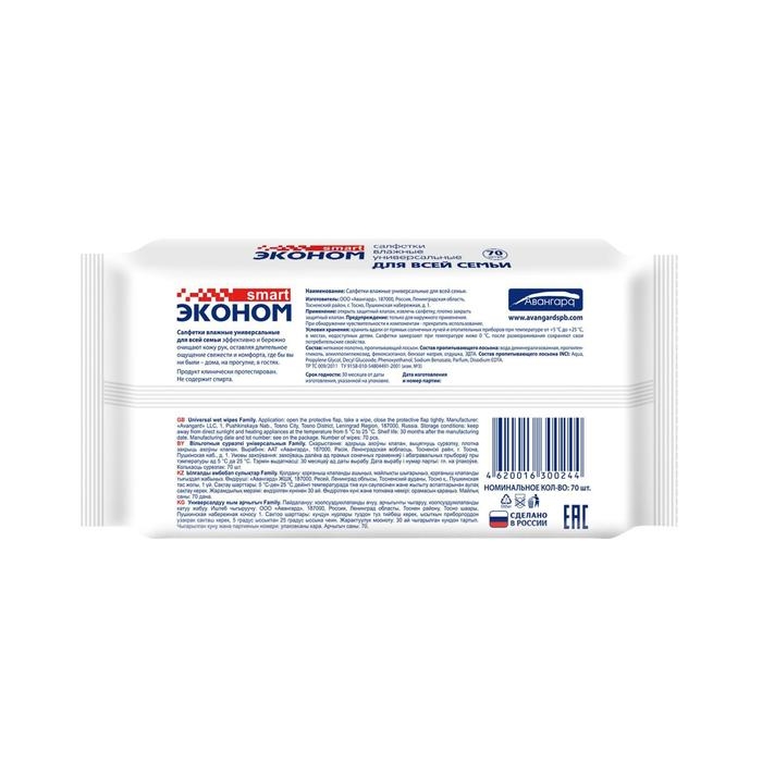 Влажные салфетки "Эконом" Smart, для всей семьи, 70 шт