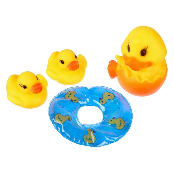 Набор резиновых игрушек для ванны «Утята с кругом», 8 см, с пищалкой, 4 шт., цвет МИКС, Крошка Я