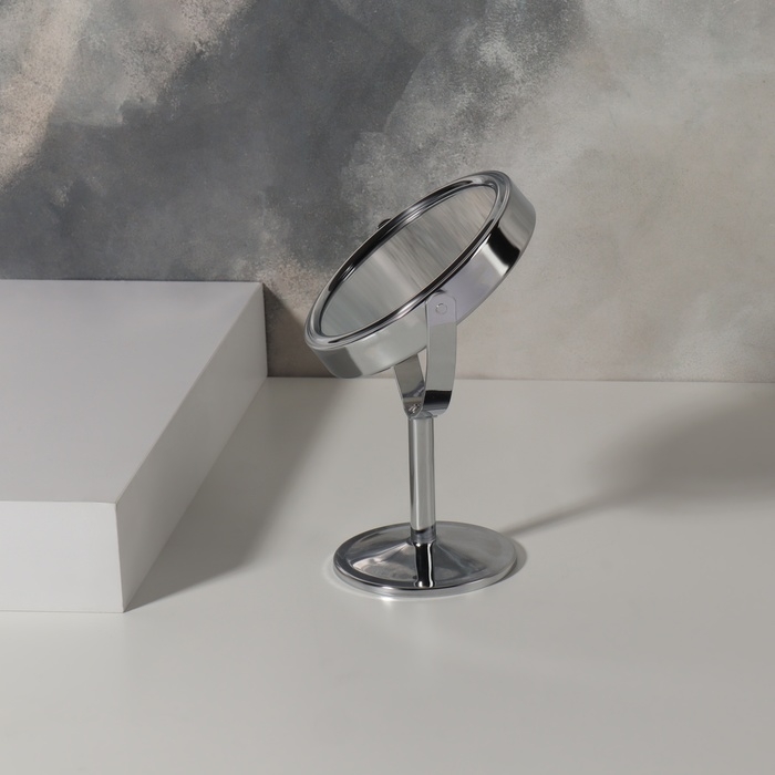 Зеркало на ножке «Круг», двустороннее, с увеличением, d зеркальной поверхности 7,7 см, цвет серебристый