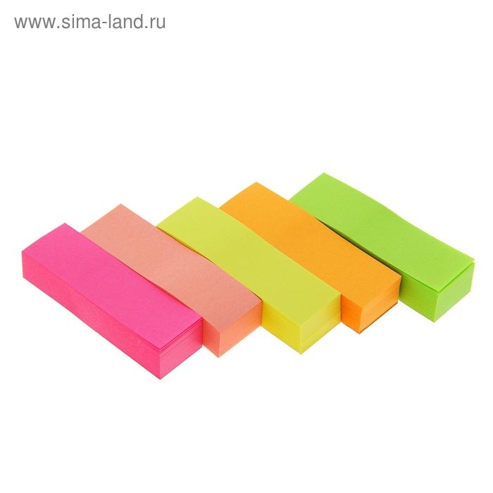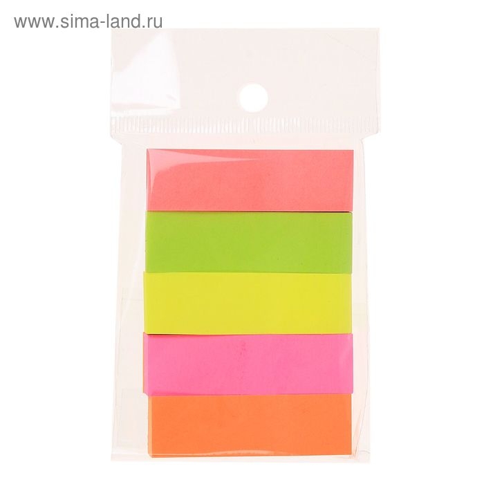 Блок-закладка с липким краем 50 мм х 15 мм, 5 цветов по 100 листов, флуоресцентный, МИКС