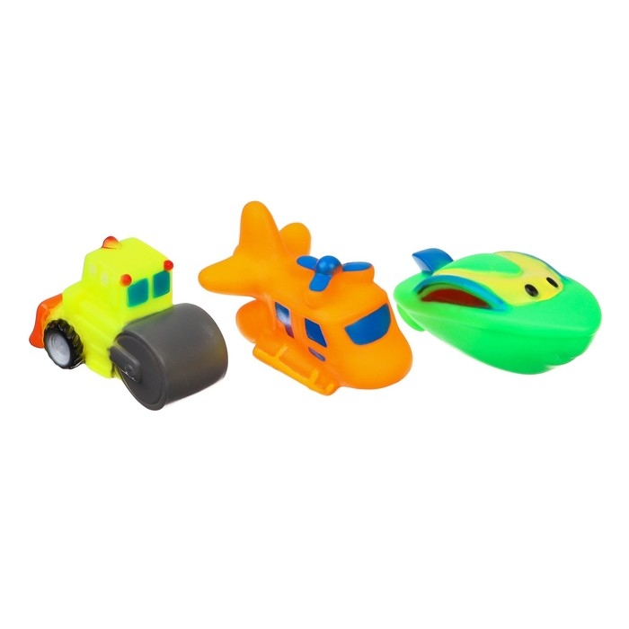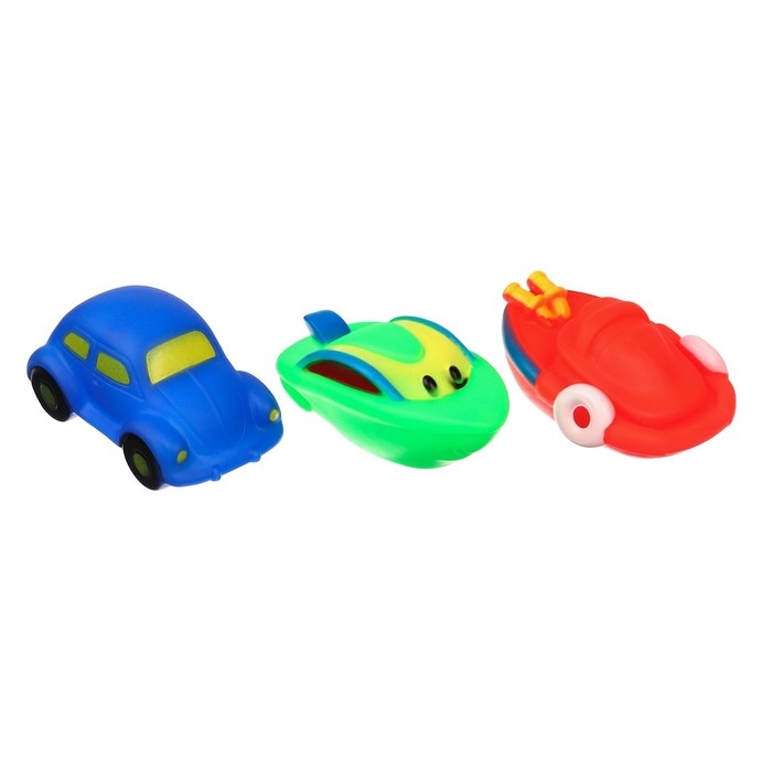 Набор резиновых игрушек для ванны «Транспорт», с пищалкой, 3 шт, виды МИКС, Крошка Я