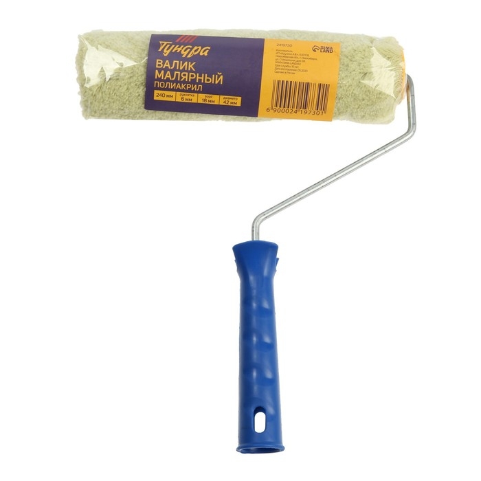 Валик ТУНДРА, полиакрил, 240 мм, рукоятка d=6 мм, D=42 мм, ворс 18 мм