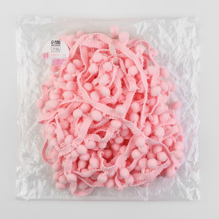 Тесьма декоративная с помпонами, 25 ± 5 мм, 9,1 ± 0,5 м, цвет розовый
