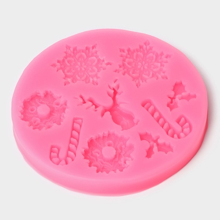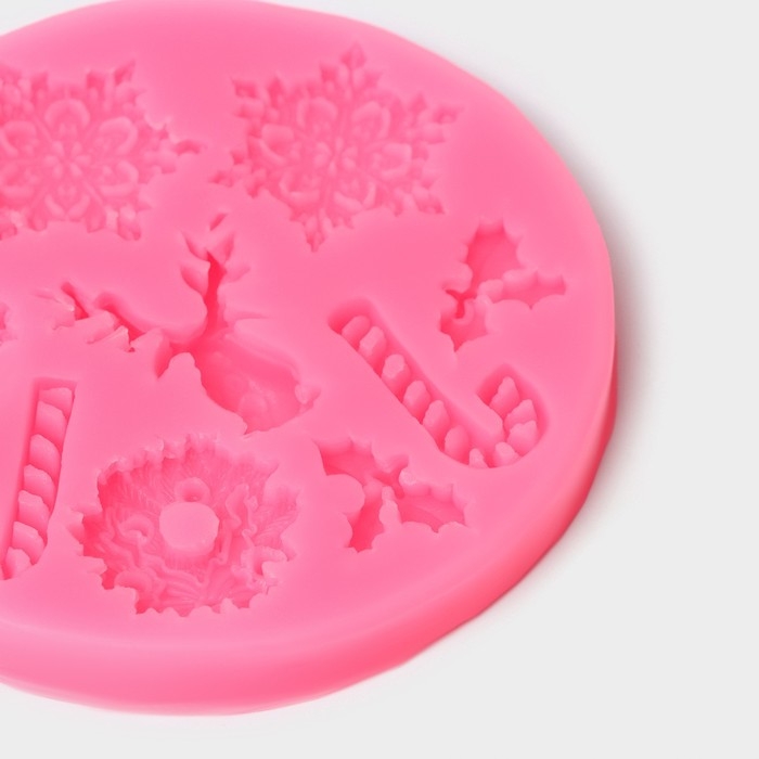 Молд новогодний «Снежинки», силикон, d=9,5 см, цвет розовый