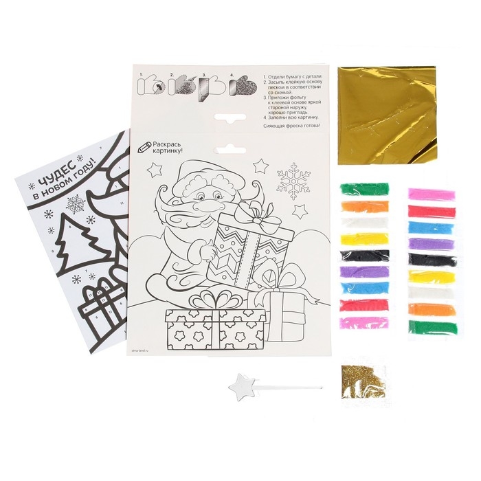 Сияющая фреска на новый год «Чудес в Новом году!», новогодний набор для творчества