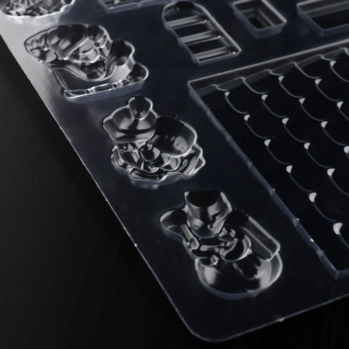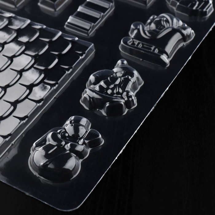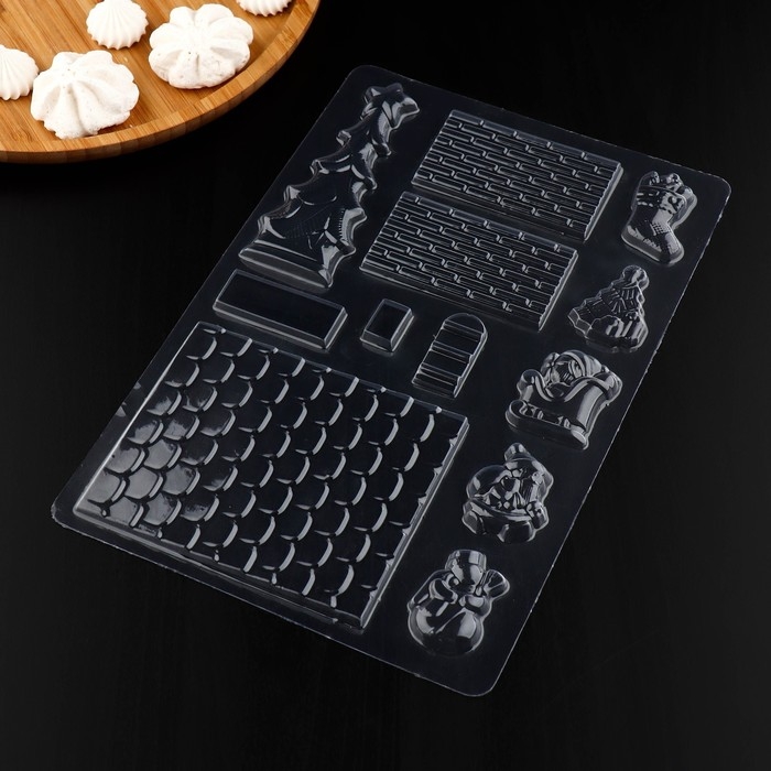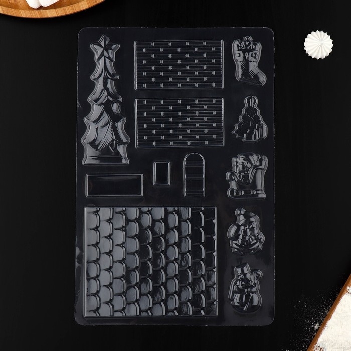 Форма для шоколада новогодняя «Элементы домика», 12 ячеек, 15×8×2,5 см, цвет прозрачный