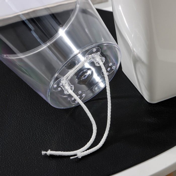 Кашпо состоит из основного горшка и внутренней части, в которую продевается шнурок, питающий корни водой из нижней части изделия.
