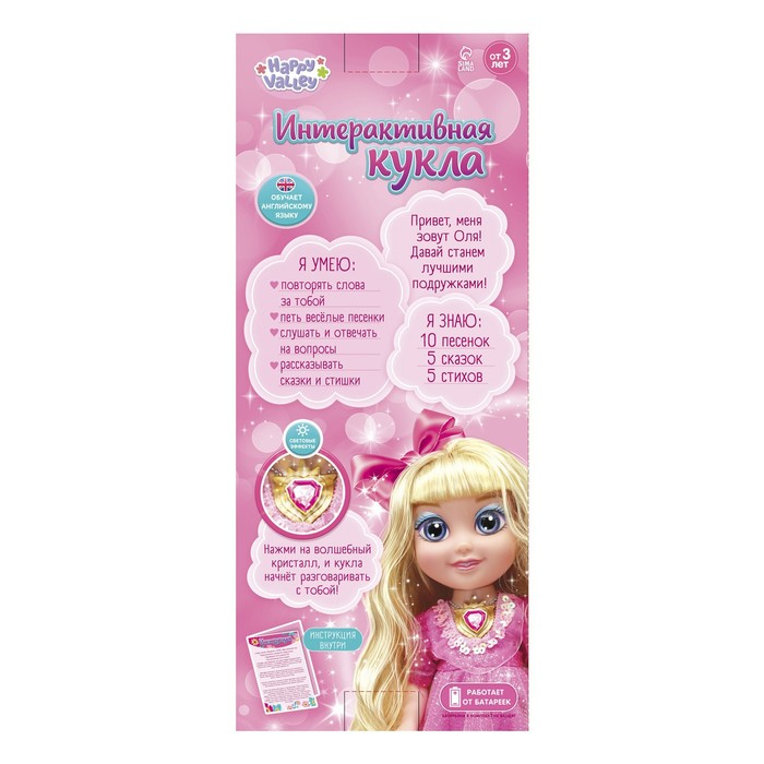 Кукла интерактивная «Подружка Оля» с диктофоном, поёт, понимает фразы, рассказывает сказки и стихи, высота 33 см