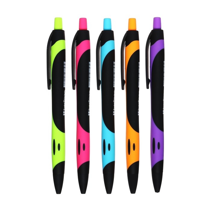 Эффектная шариковая автоматическая ручка с клипом является частью одноименной яркой серии. Прорезиненное яркое покрытие черного корпуса и утолщение в зоне захвата ручки обеспечивают высокий уровень комфорта при ее использовании. Диаметр пишущего узла составляет 0,7 мм, толщина линии письма – 0,5 мм, а длина письма – 600 м. Уникальная запатентованная технология Smart Ink обеспечивает лёгкое и приятное письмо, за счёт использования чернил пониженной вязкости и инновационных материалов шарика, пишущего узла и его специальной конструкции. Инновационные компоненты, используемые для изготовления шарика пишущего узла (карбид вольфрама), обеспечивают долговечность и стабильность качества письма. Технология: Smart Ink,Цвет чернил: синяя,Толщина линии письма: 0,5 мм,Длина письма: 600 м,Цвет корпуса: микс из 5-ти цветов.