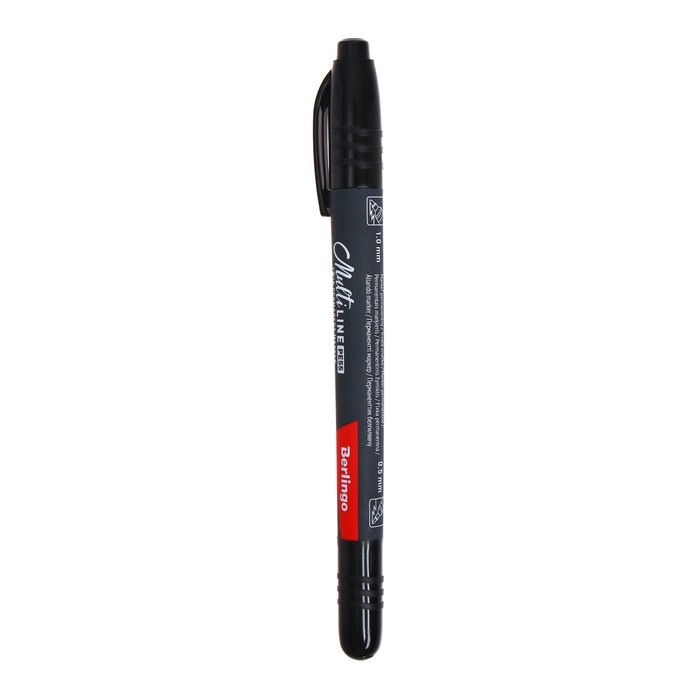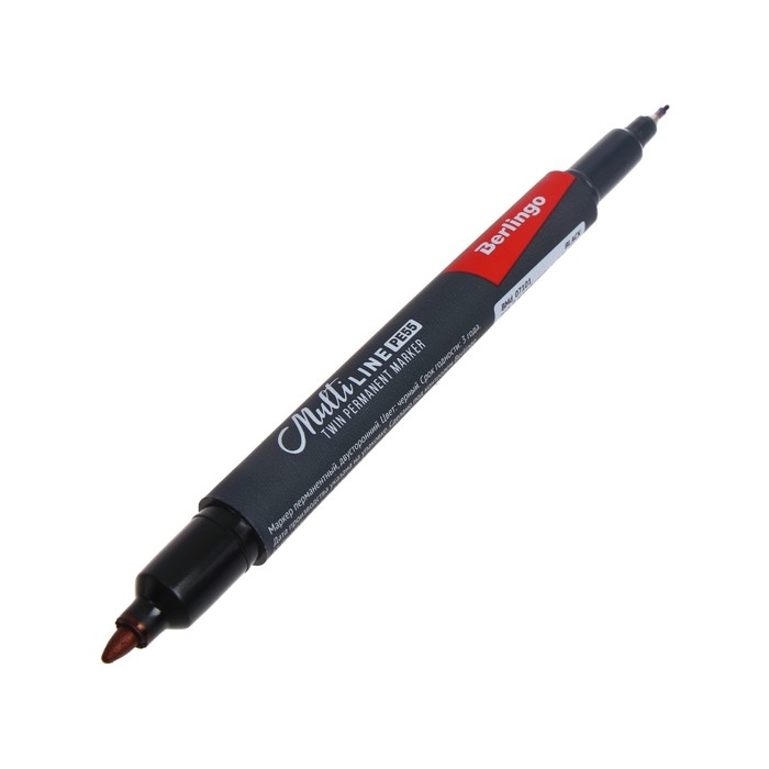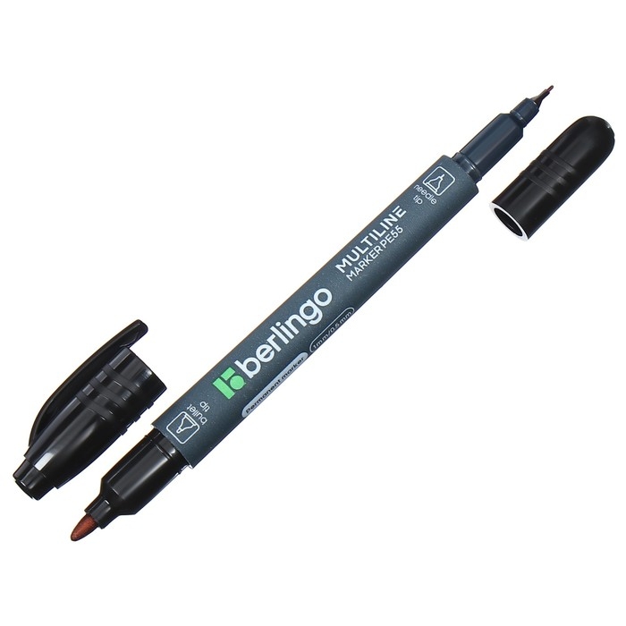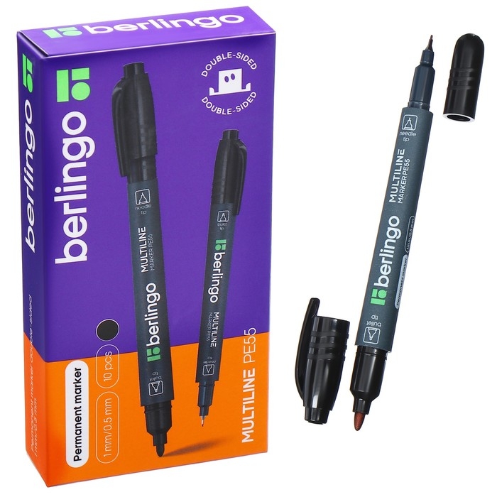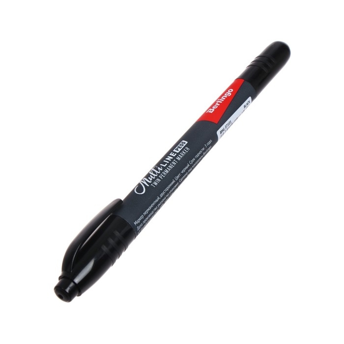 Двусторонний перманентный маркер Berlingo позволяет варьировать толщину линии от 0,5 до 1 мм. Заправлен стойкими и яркими чернилами на спиртовой основе. Подходит для использования на большинстве поверхностей, включая прозрачный пластик - не растекается. Цвет: черный.