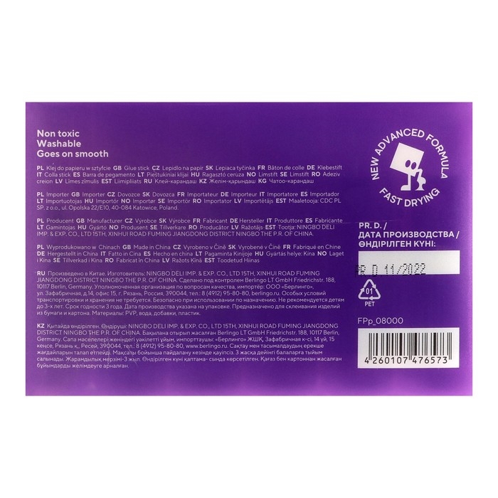 Клeй-карандаш ПВП 8 г Berlingo, с цветным индикатором