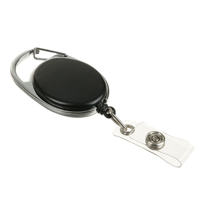 Карабин для бейджа, с держателем-рулеткой, на кнопке, чёрный