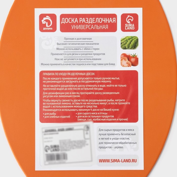 Доска разделочная овальная Доляна «Симплекс», 24,5×17 см, цвет оранжевый