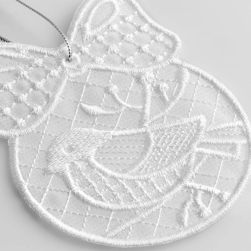 Нежные, как первый снег, и полупрозрачные, как морозное дыхание, — украшения из шифона подарят ощущение настоящего новогоднего чуда. Филигранная вышивка поражает своей почти невесомой легкостью, а серебристые нити и белоснежная бусинка элегантно дополняют весь ансамбль — каждая деталь этих подвесок передает радость и волшебство зимы.