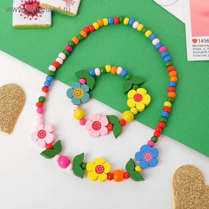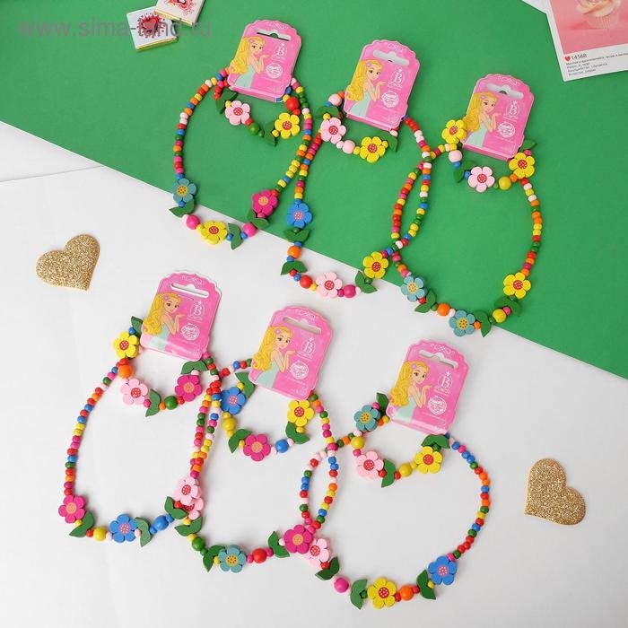 Набор детский «Выбражулька» 2 предмета: бусы, браслет, цветочное настроение, цвет МИКС