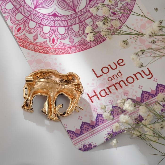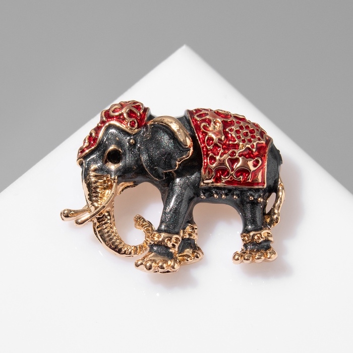 Брошь «Слон индийский», цвет красно-серый в золоте